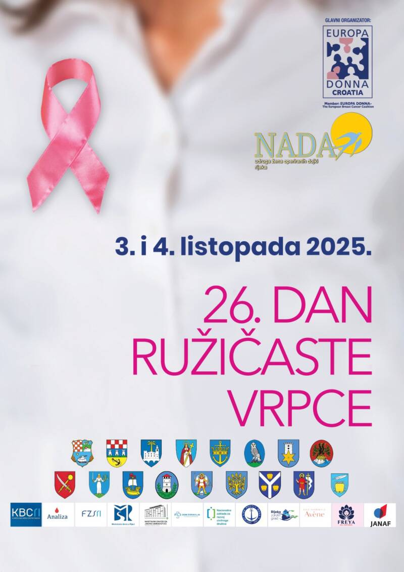 S ponosom najavljujemo da ćemo i ove godine biti dio jedne od najvažnijih humanitarnih akcija u našem gradu – 26. Dana ružičaste vrpce, koji će se održati 3. i 4. listopada 2025. na riječkom Korzu, u organizaciji Udruge žena operiranih dojki Nada – Rijeka.